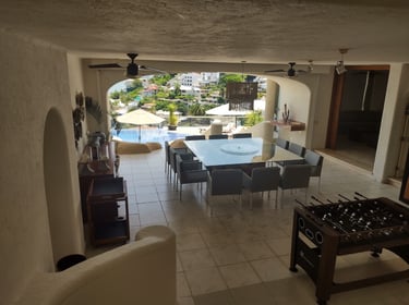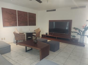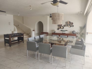 Casa en las Brisas con decoración moderna en tono de grises y madera. Cuenta con sala de Juegos y Sala de TV, tiene mesa de futbolito.