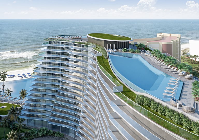 Azur está ubicado junto al disruptivo edificio de Mare By Roberto Cavalli y enfrente del campo de golf de Vidanta; La intención de invitarte en esta primera etapa de friends and family es darte a conocer el proyecto y que seas de los primeros compradores en poder elegir el departamento de tus sueños.