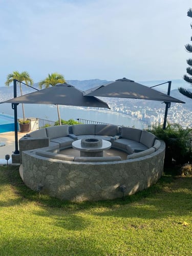 Cuenta con alberca, jacuzzi, fire pit, comedor para 12 personas y un jardín enorme donde puedes estacionar tu helicóptero.