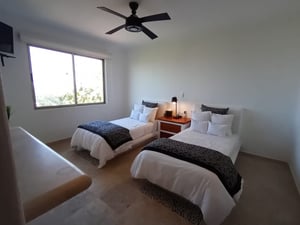 Puedes nadar en el jacuzzi privado o bajar a la alberca del condominio. Si eso no te satisface un cochecito pasara por ti para ir al club de playa Celeste Beach House.