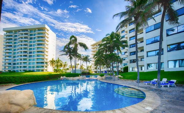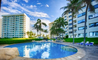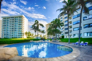 Condominio a pie de playa. Decoración estilo tropical y excelente alberca y playa. El departamento tradicional para vacacionar en Acapulco.